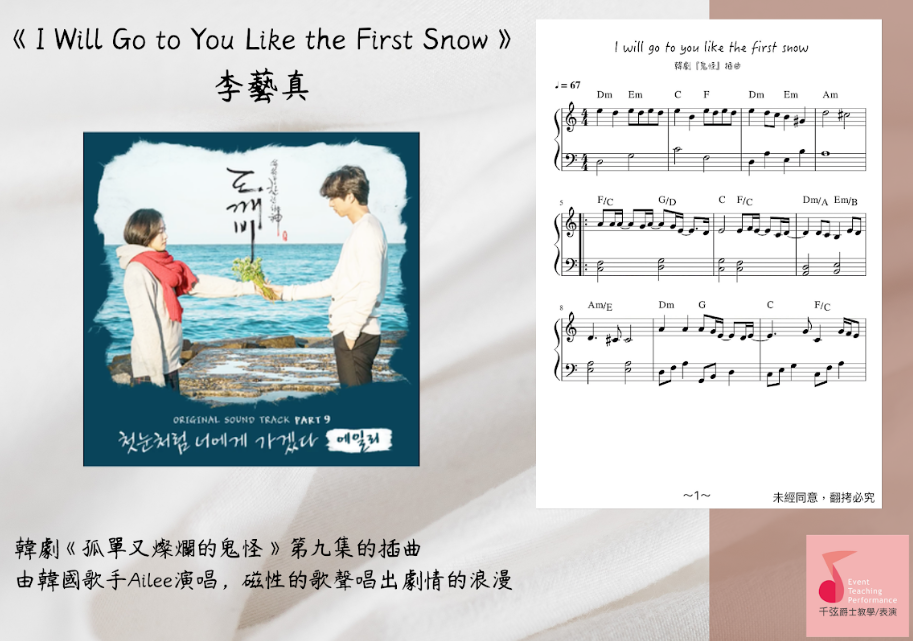 【客戶訂製 08】《五線譜》I will go to like the first snow you -Ailee《韓劇孤單又燦爛的神-鬼怪配樂》